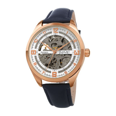 August Steiner Mens Automatic Blue Leather Strap Watch As