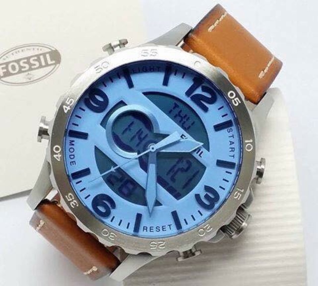 Men S Fossil Nate Digital Analog Leather Strap Watch Jr1492 Youtube