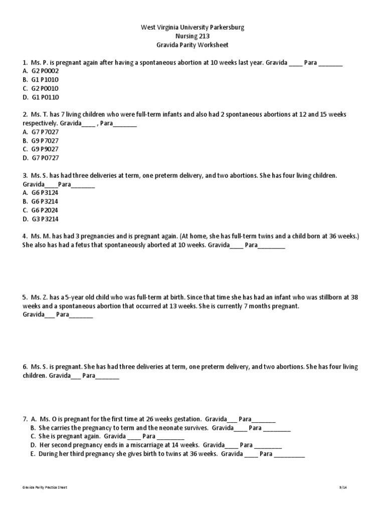 Gravida Para Worksheet 1 Pregnancy Miscarriage Free 30 Day