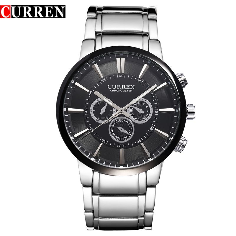 Curren Famous Brand Mens Full Steel Watch Three Small Dial