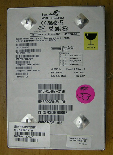 Hp 236921 001 40 0gb Ide Seagate St340015a 40 0gb Hd