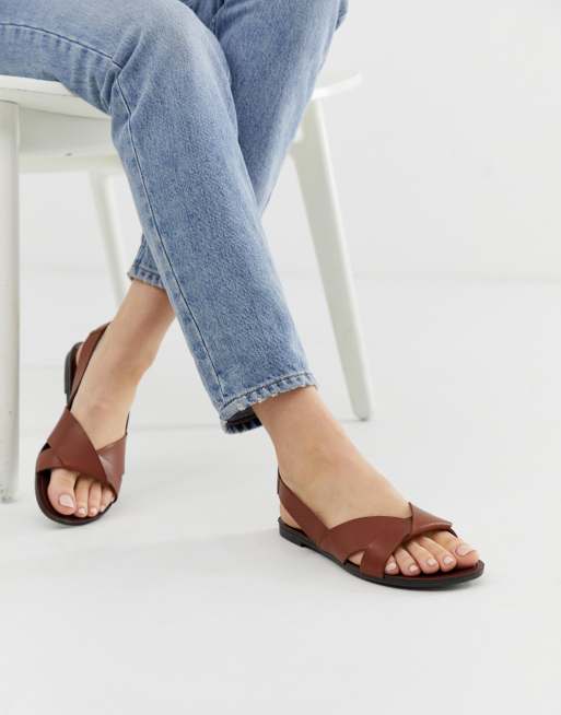 Vagabond Tia Tan Leather Flat Sandals Asos